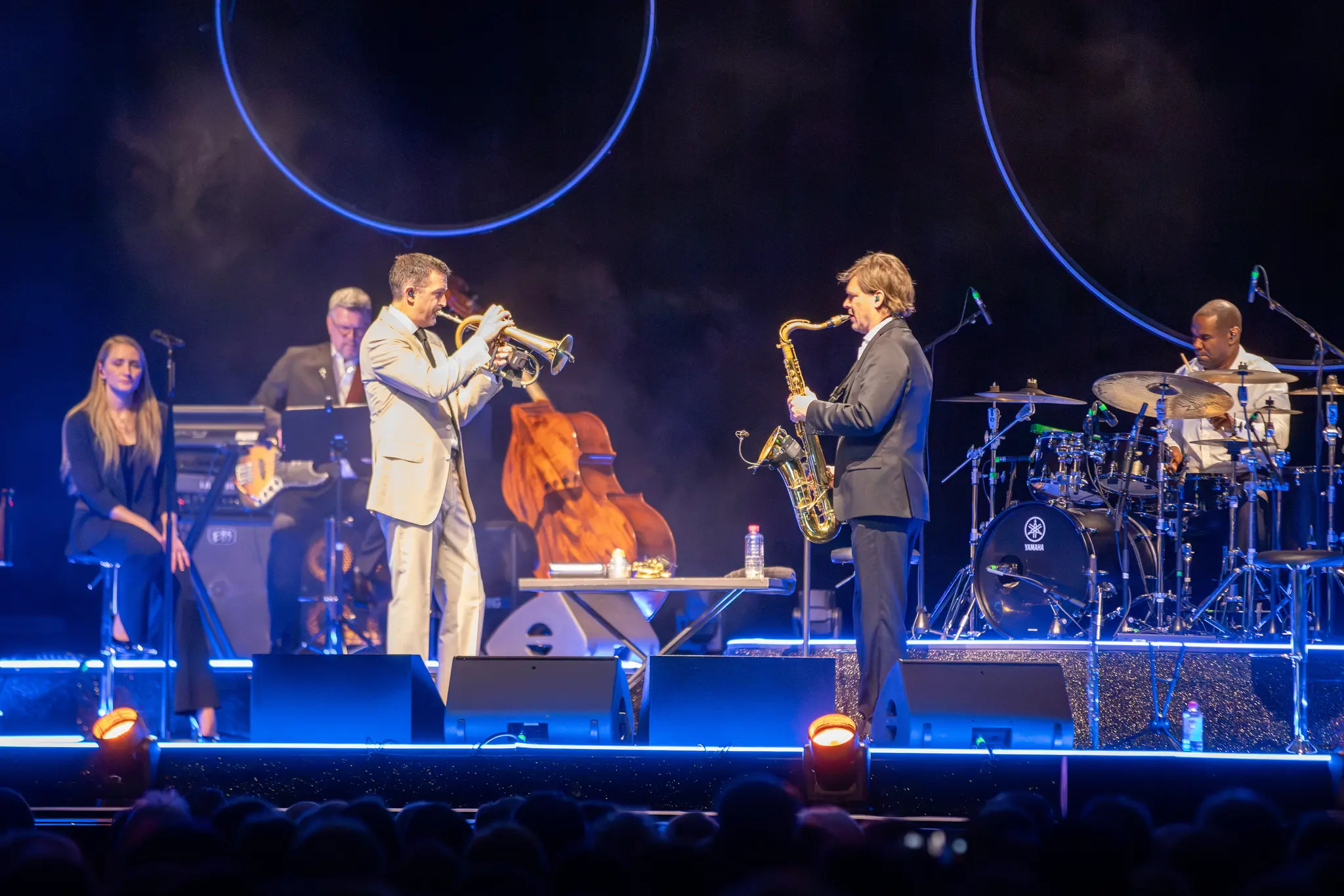 Auch bei Paolo Contes „Via con me“ stößt Brönners Ensemble an seine Grenzen – der Originalsong ist einfach Jazz pur und Contes brummelnder Bass unverwechselbar und unkopierbar. Da können Brönner und seine Mitsängerin Alessia Tavian keine neuen Impulse setzen. Beim Wechsel ins Schlagerfach mit dem arg seichten „L’appuntamento“, mit „Viva la felicità“, mit „Parole Parole“ und „Amarsi un po’“ bleibt Brönners Combo weit unter ihren Möglichkeiten. Immerhin: Dann und wann lässt der Bonner Trompeter den Jazzer in sich von der Kette, improvisiert fulminant und liefert sich mit Wyands Saxofon Gefechte. David Haynes, der den Abend mit dem Schlagzeug und Bossa-Nova-Rhythmen immer wieder wunderbar grundiert, bekommt ebenso sein fulminantes Solo wie der Gitarrist Bruno Müller, Christian von Kaphengst am Bass, der Pianist Olaf Polziehn und Roberto Di Gioia am Keyboard. Mehr davon!