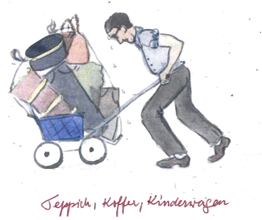 Das groβe Gepäck wird Stück f.(für) Stück