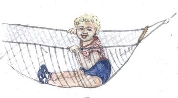 Er macht kikkerie u. lacht.