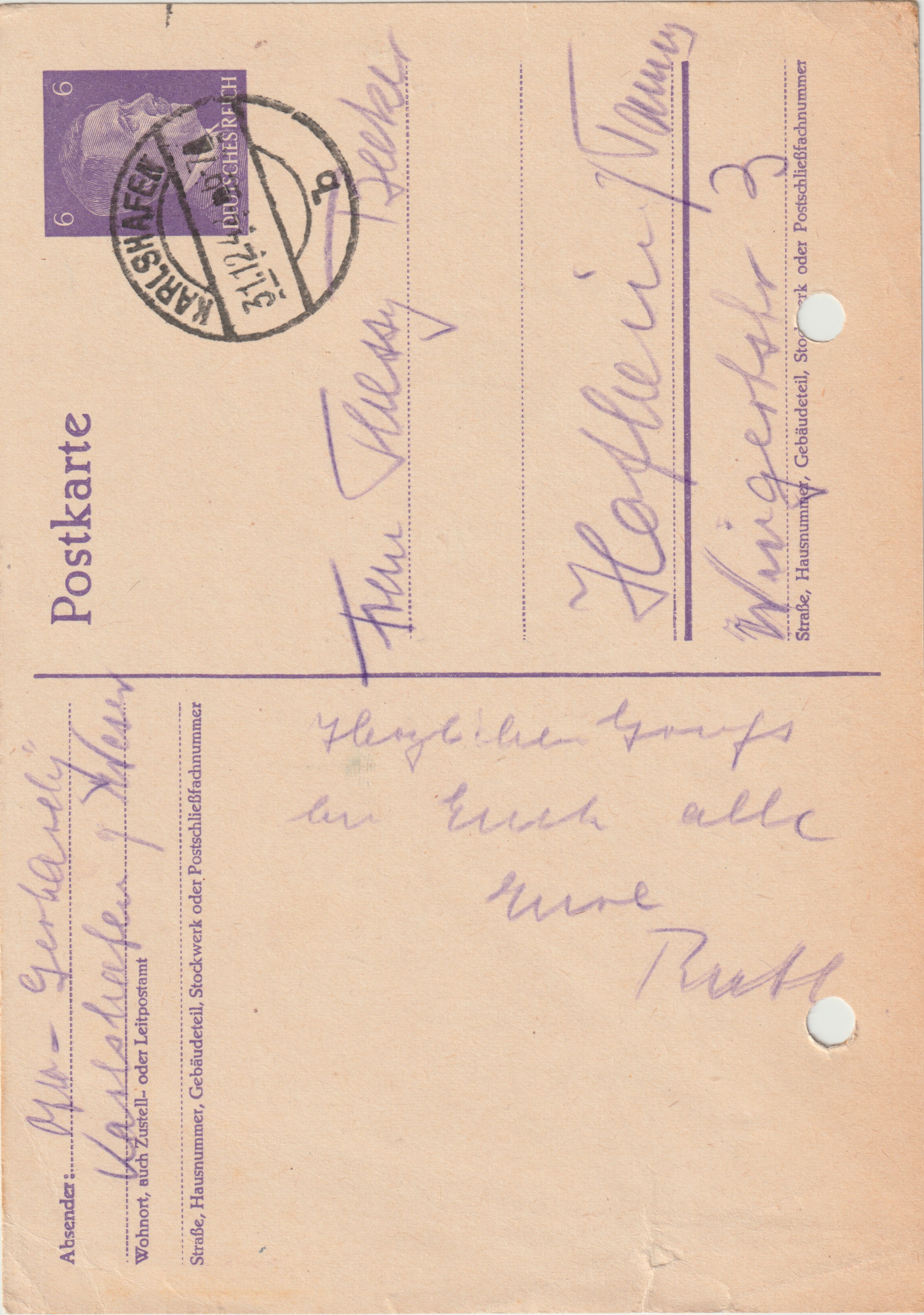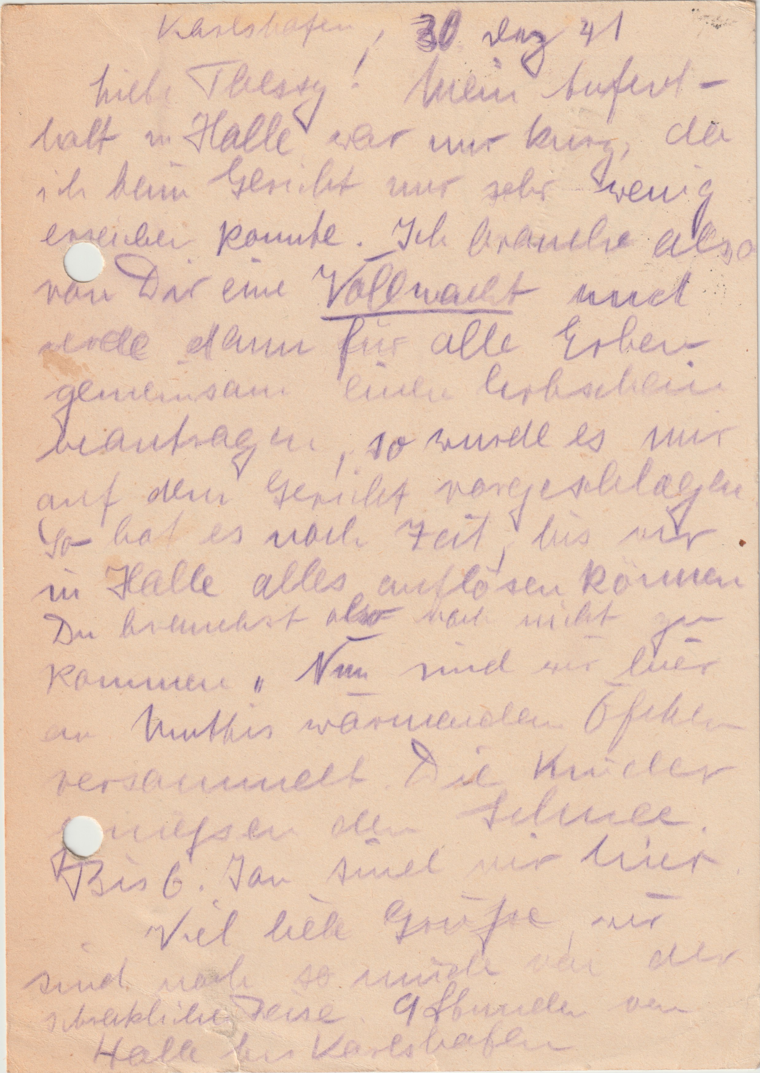 Postkarte vom 30.12.1941